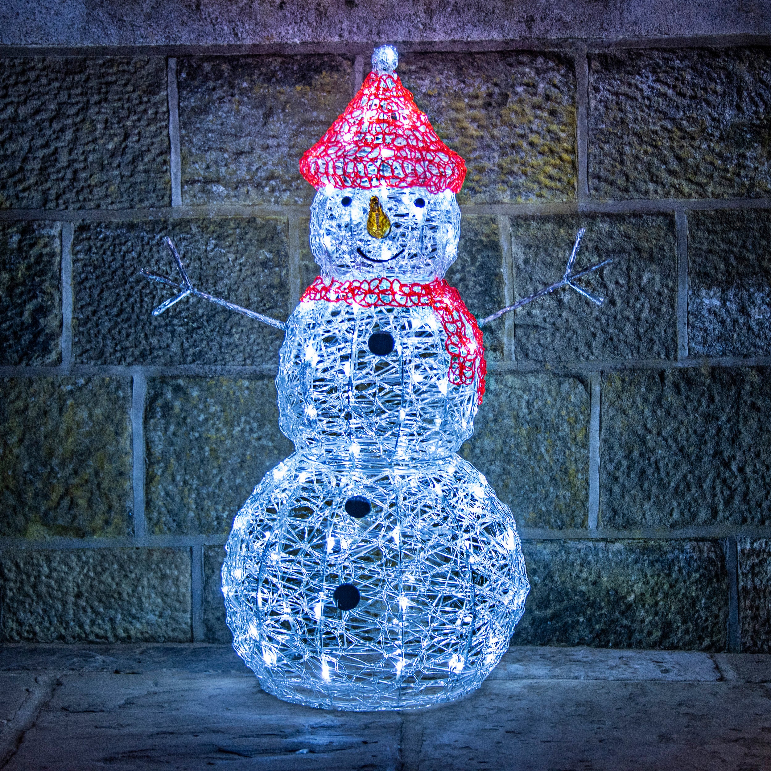 This jolly acrylic snowman decoration is sure to add festive cheer to any outdoor Christmas display!