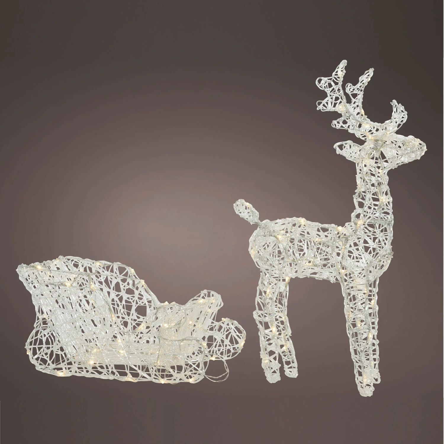 Acrylic Christmas Reindeer and Sleigh with Warm White LEDs