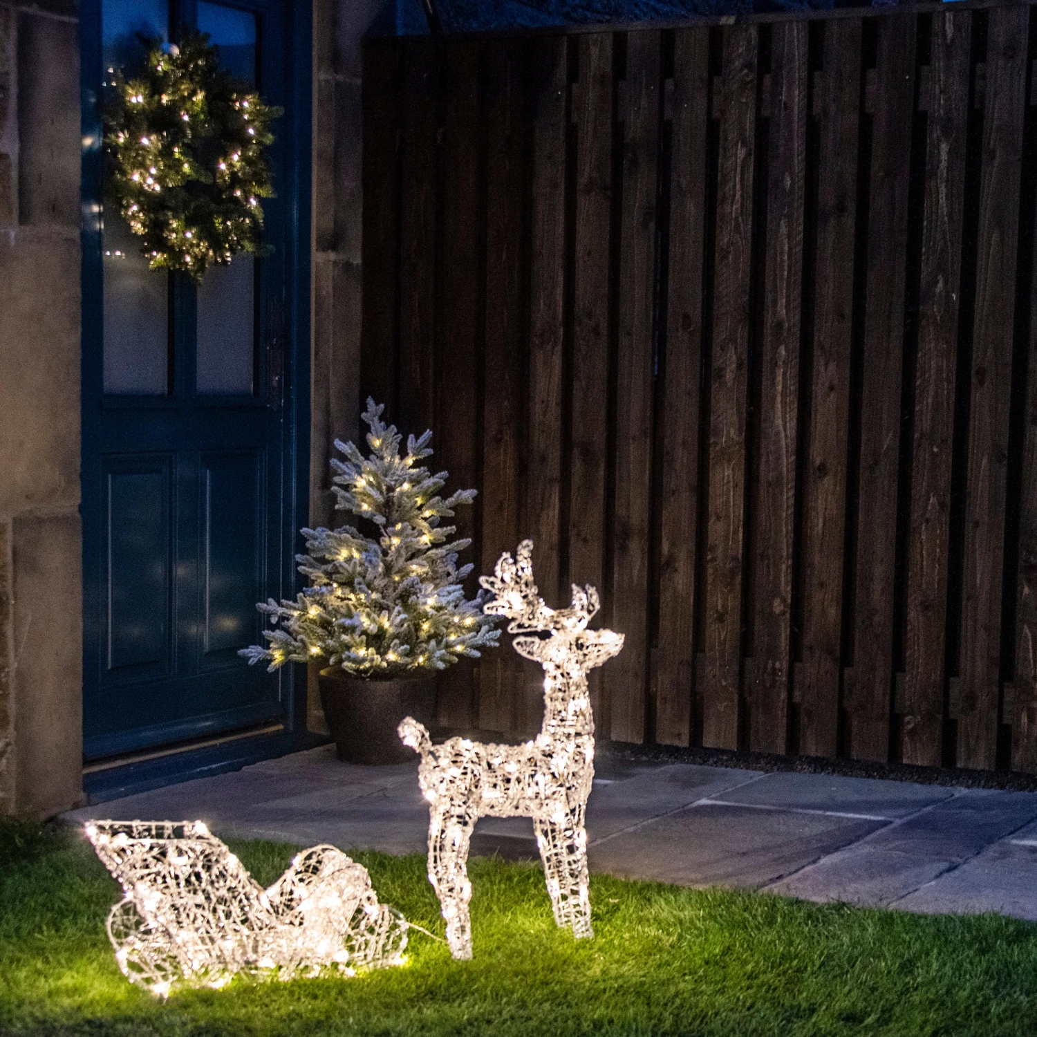 This stunning light up reindeer and sleigh are sure to add a winter wonderland feel to any outdoor display this year.