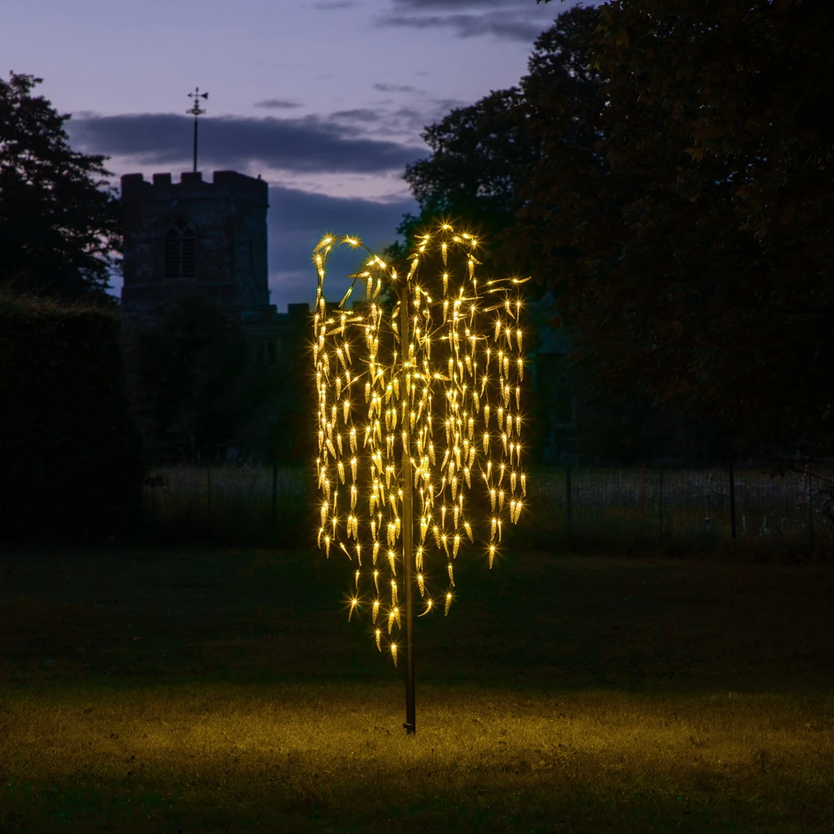 This weeping willow tree stands at 1.8m tall and is lit with 300 warm white LEDs. This lighting product is suitable for both indoor and outdoor use and would look stunning in a garden or outdoor porch/patio space with string lights cascading downwards to create a weeping willow effect. A great addition to your home this Christmas or at any time of the year!