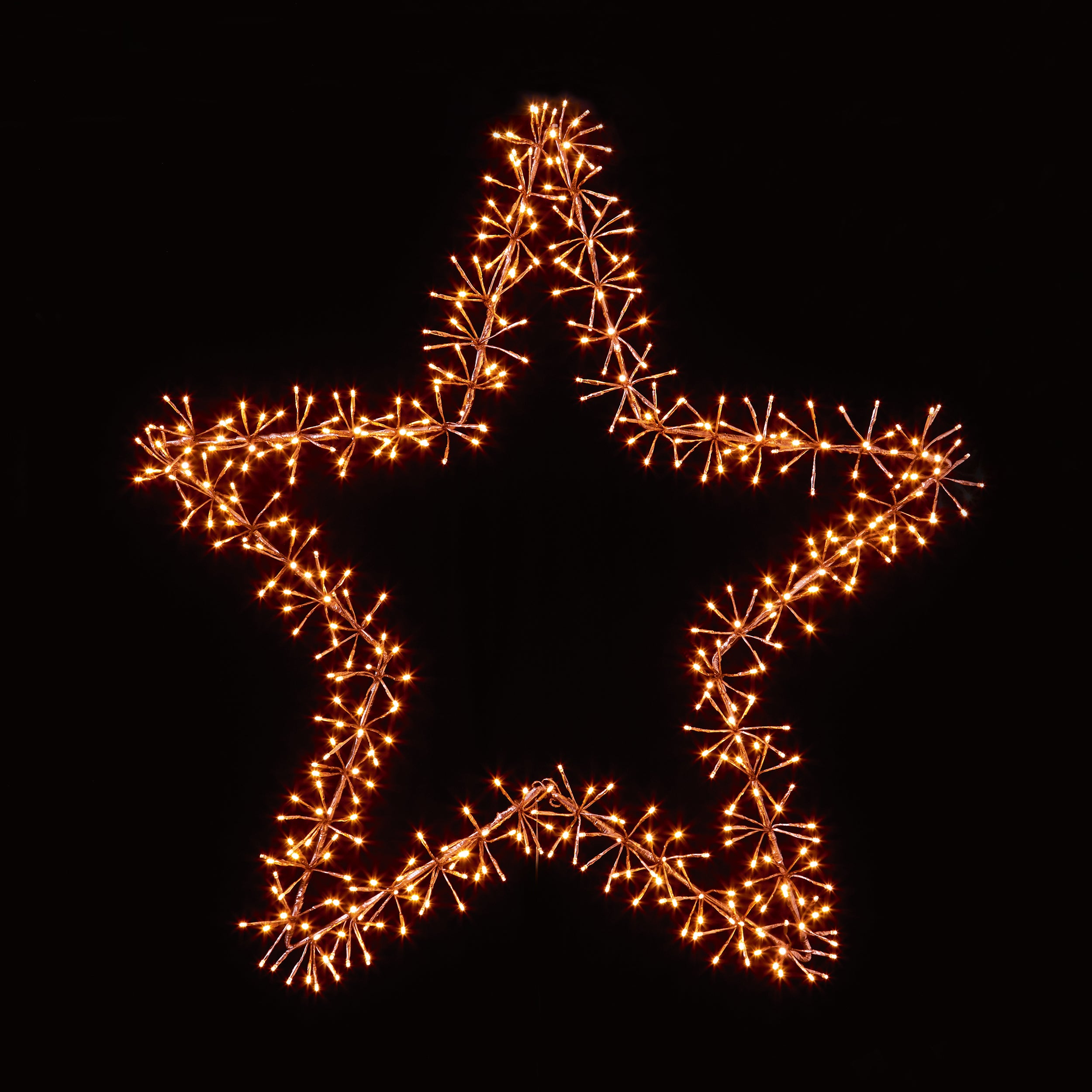 Stunning 1.2m rose gold star silhouette lit with 480 warm white LEDs.